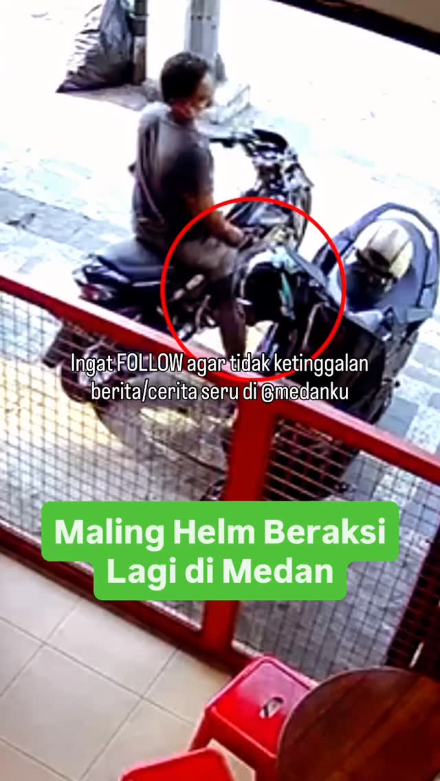 Menurut pengirim video selaku korban: “kronologis kejadian pencurian saat saya dan temen saya mau masuk ke cafe yang di jalan gatot subroto, Medan pada tanggal 31 agustus 2025 sekitar pukul 15.30 WIB dan saya memakirkan kendaraan saya didepan cafe. Saya meletakkan helm saya di stang motor tersebut di parkiran. Setelah beberapa menit kemudian saya mau pulang dan saya keluar dari cafe tersebut dan tidak melihat helm saya terletak di motor saya lagi maka lalu saya meminta rekaman cctv pada cafe tersebut dan mereka mengizinkan untuk menshare vidio tersebut”