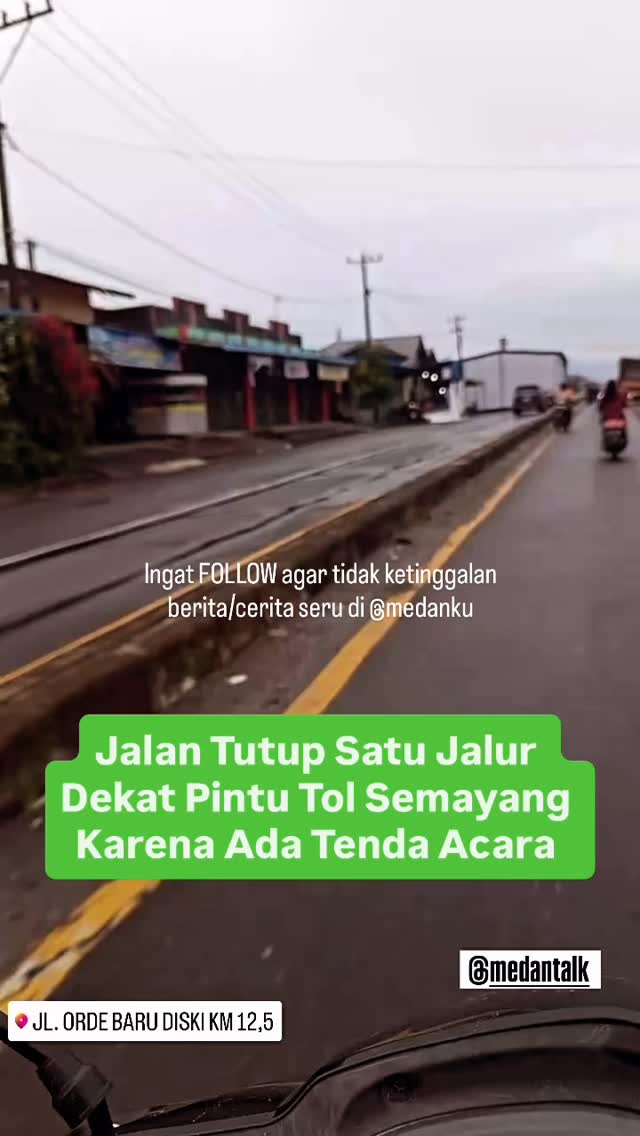 Menurut pengirim video: “Tenda terlihat pagi tadi 15/09/25 di Jalan Orde Bar Diski 12.5 KM, deliserdang. Pengguna jalan terpaksa lawan arah dan dihimbau untuk berhati hati dan antisipasi padat lalulintas”