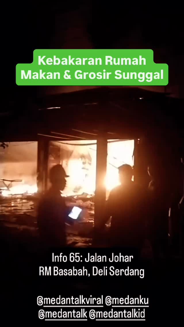 Menurut pengirim video: “Diduga Penyebab terjadinyanya kebakaran dikarenakan gas bocor pada tanggal Jumat, 5 September 2025 pukul 22:30 WIB. Lokasi bertempat tinggal jalan johar Sei Mencirim Sunggal Medan. Dalam kejadian tersebut tidak ada korban jiwa dalam kebakaran tersebut menghabiskan RM Basaba dan Glosir Sembako”