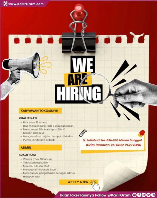 Browse berita / cerita Medan sesuai hashtags >> KarirGram Medan loker lowongankerja