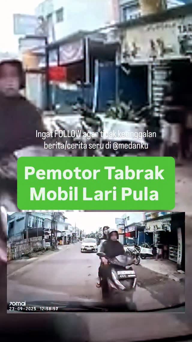 Menurut pengirim video selaku korban: “Kronologis Kejadian tabrak lari pada tanggal 23 September 2025 jam 12.58 WIB di simpang lampu merah Jalan Ayahanda simpang Gatot Subroto, Medan. Posisinya saya memang rem mendadak tapi seharusnya pemotor masih masih sempat rem kalau tidak karena lagi sibuk tidak konsentrasi karena perbaiki kaca helmnya dan bawa motor hanya satu tangan. Saya memang agak lama baru turun dari mobil karena mengamankan barang2 pribadi terlebih duhulu dan mengambil kunci mobil dari tas. Dasar memang pemotor tidak ada tanggung jawab langsung kabur pergi. Bumper kiri mobil saya lecet karena kejadian ini. Kejadian terekam di dashcam mobil saya Wajah dan nomor plat pemotor terlihat dalam video.”