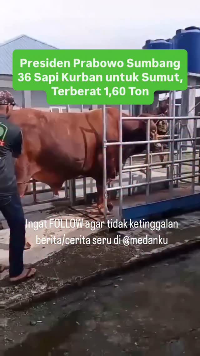 Berita Medan & SUMUT: Presiden Prabowo Subianto menyumbang 36 sapi kurban ke Sumut. Sapi terberat berukuran 1,60 ton yang dibeli seharga Rp 100 juta.