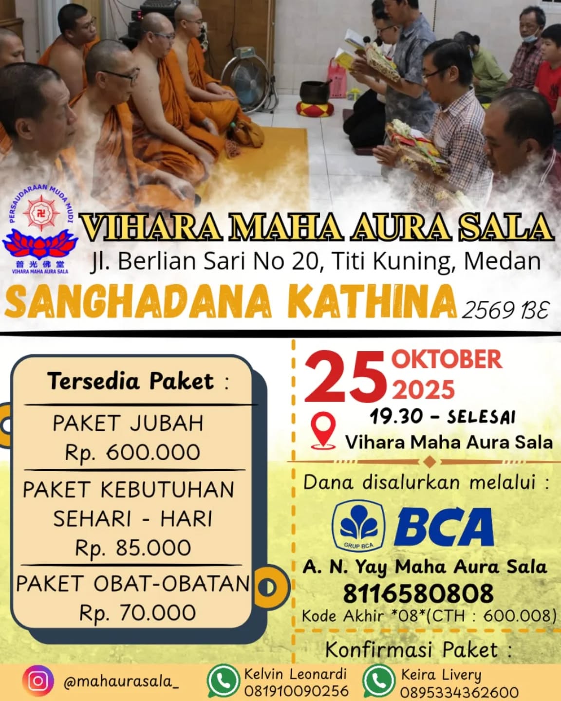 Mari bersama-sama menghadiri dan berpartisipasi dalam Sanghadana Kathina di VIHARA MAHA AURA SALA