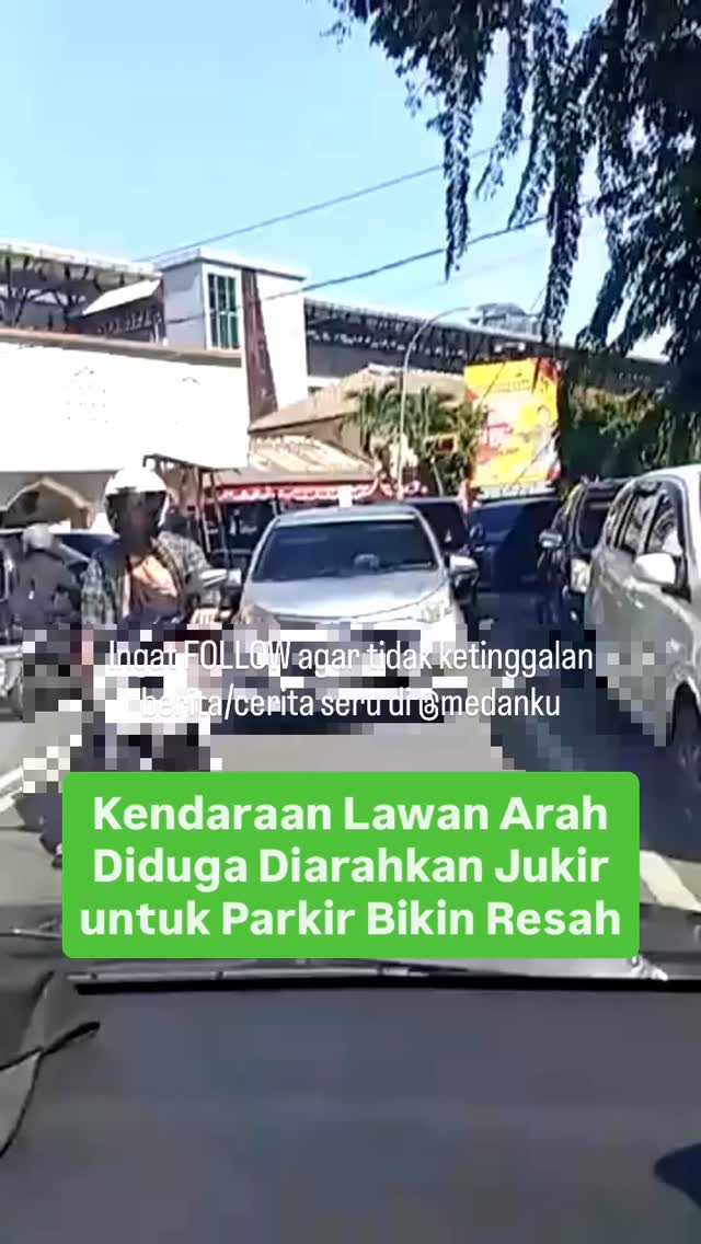 Menurut pengirim video: “Kronologis kejadian adanya banyak pengendara melawan arah diduga dari arahan jukir yang meresahkan karena mengganggu arus lalulintas dan membahayakan. Kejadian di jalan jawa Medan, depan rumah sakit dekat mall pada hari sabtu 06/09/25 sore.”