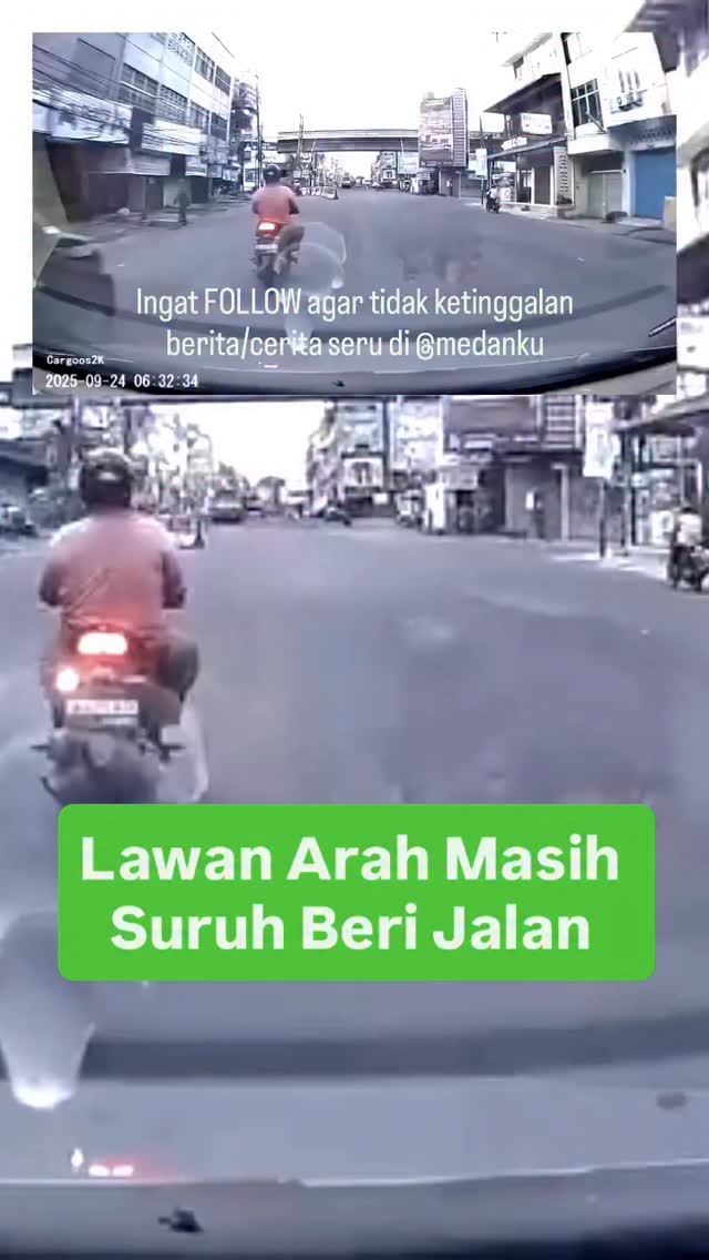 Menurut pengirim video: “Kejadian di Jalan Thamrin Medan. Sering banyak kendaraan sepeda motor maupun mobil yang suka lawan arah disini untuk bisa mutar belok ke kanan. Sudah menghalang mobil masih suruh beri jalan katanya masih lebar dikiri padahal belakang ada mobil dan samping ada motor. Kejadian pagi tadi sekitar pukul 06.32 WIB 24/09/25”