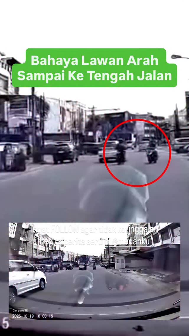 Menurut pengirim video: “Banyak Sepeda Motor Lawan arah di Jalan Bambu 2 Medan. Kejadian ini pada 19/10/25 sekitar pukul 10.05 WIB. Ada satu sepeda motor yang sudah Lawan arah menyebrang lagi ke tengah jalan hampir kecelakaan. Membahayakan pengguna jalan.”