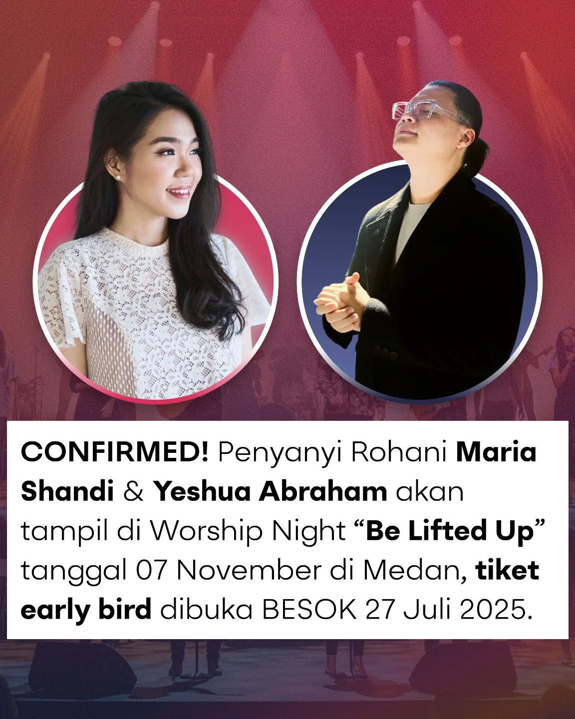 Cerita Medan & SUMUT: IT’S OFFICIAL! Maria Shandi & Yeshua Abraham akan tampil di Worship Night “Be Lifted Up” pada 7 November 2025 di Gedung Pardede Hall Medan! Tiket Early Bird dibuka BESOK 27 Juli 2025 dan bisa dibeli melalui YesPlis, atau langsung kunjungi profil @belifted.up untuk informasi lebih lanjut. Jangan sampai kehabisan, catat tanggalnya […]