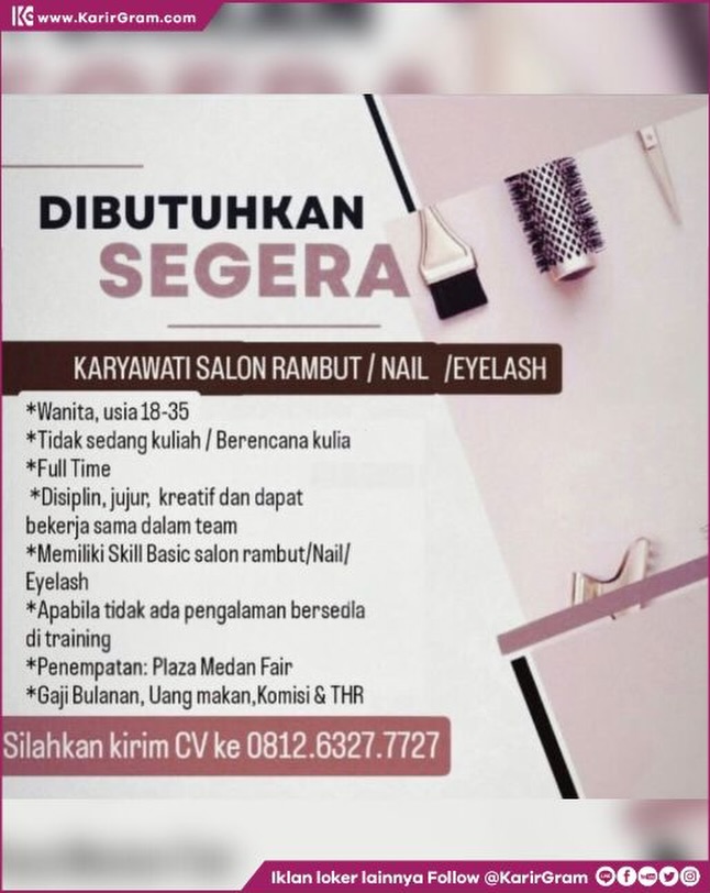 Lowongan Kerja KARYAWATI SALON RAMBUT / NAIL / EYELASH Bagi