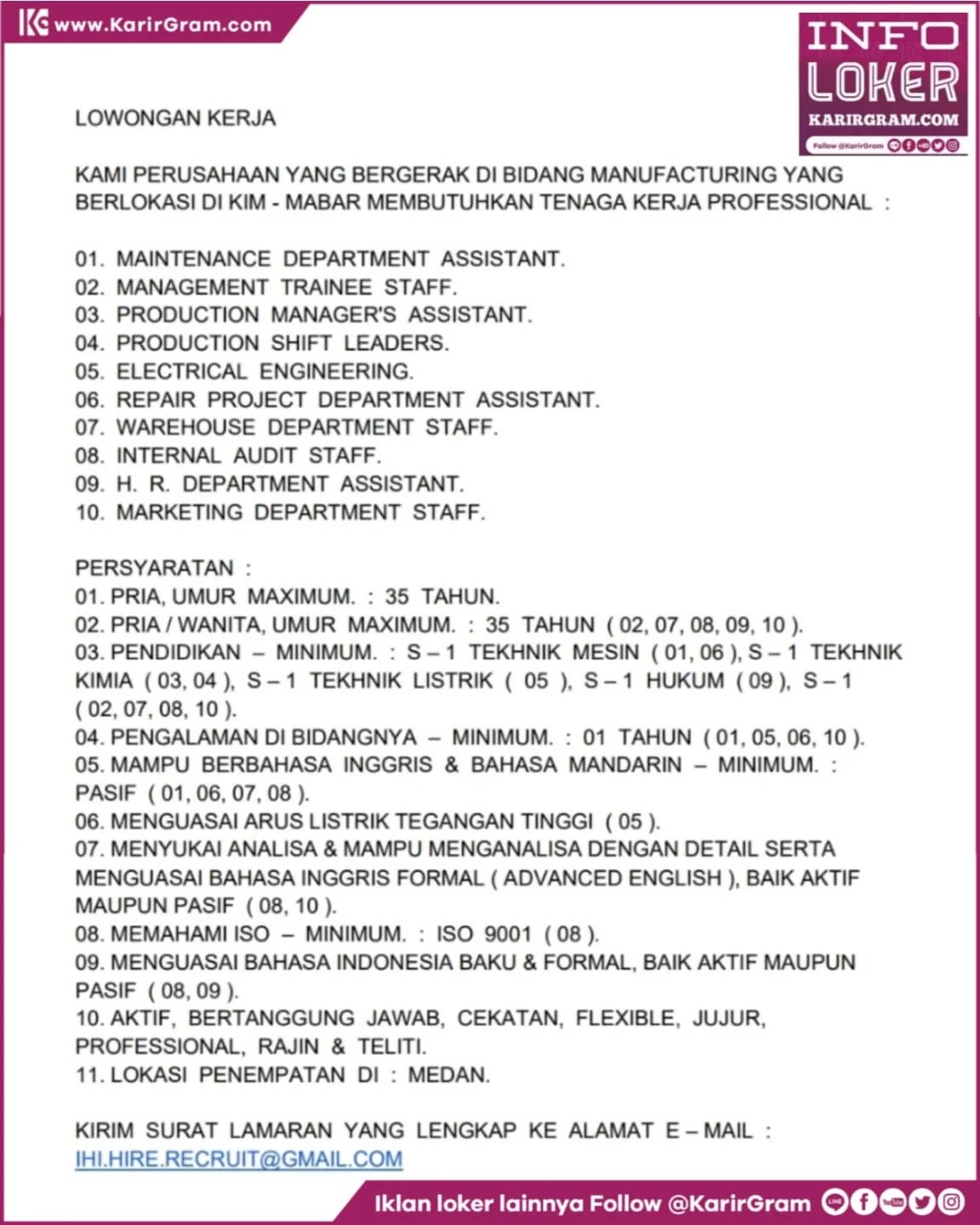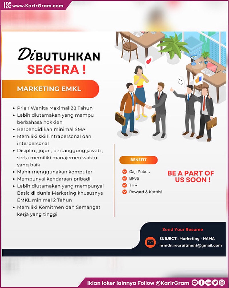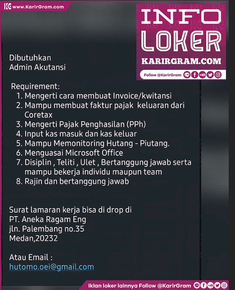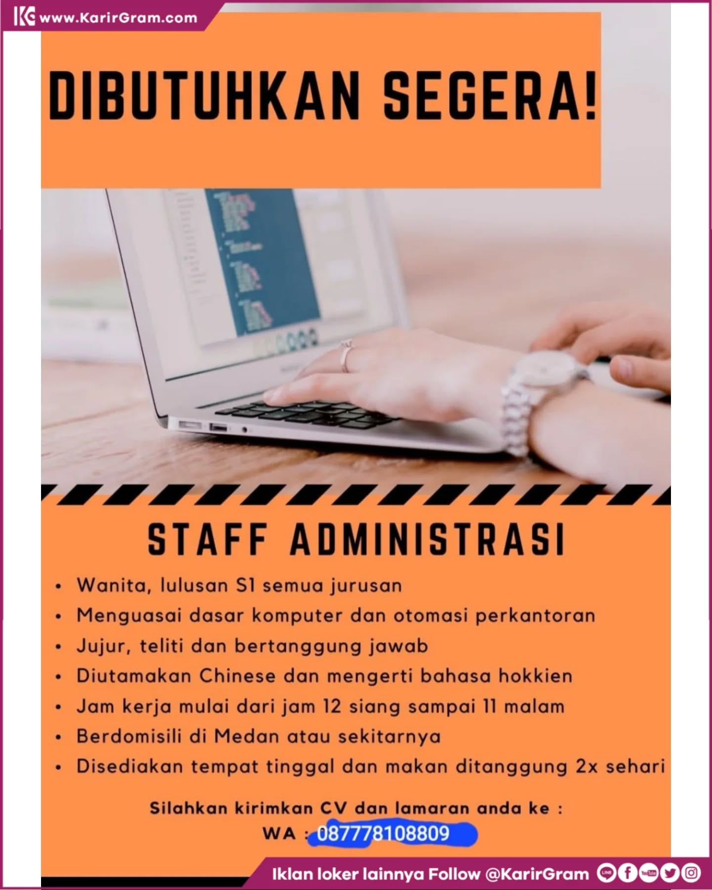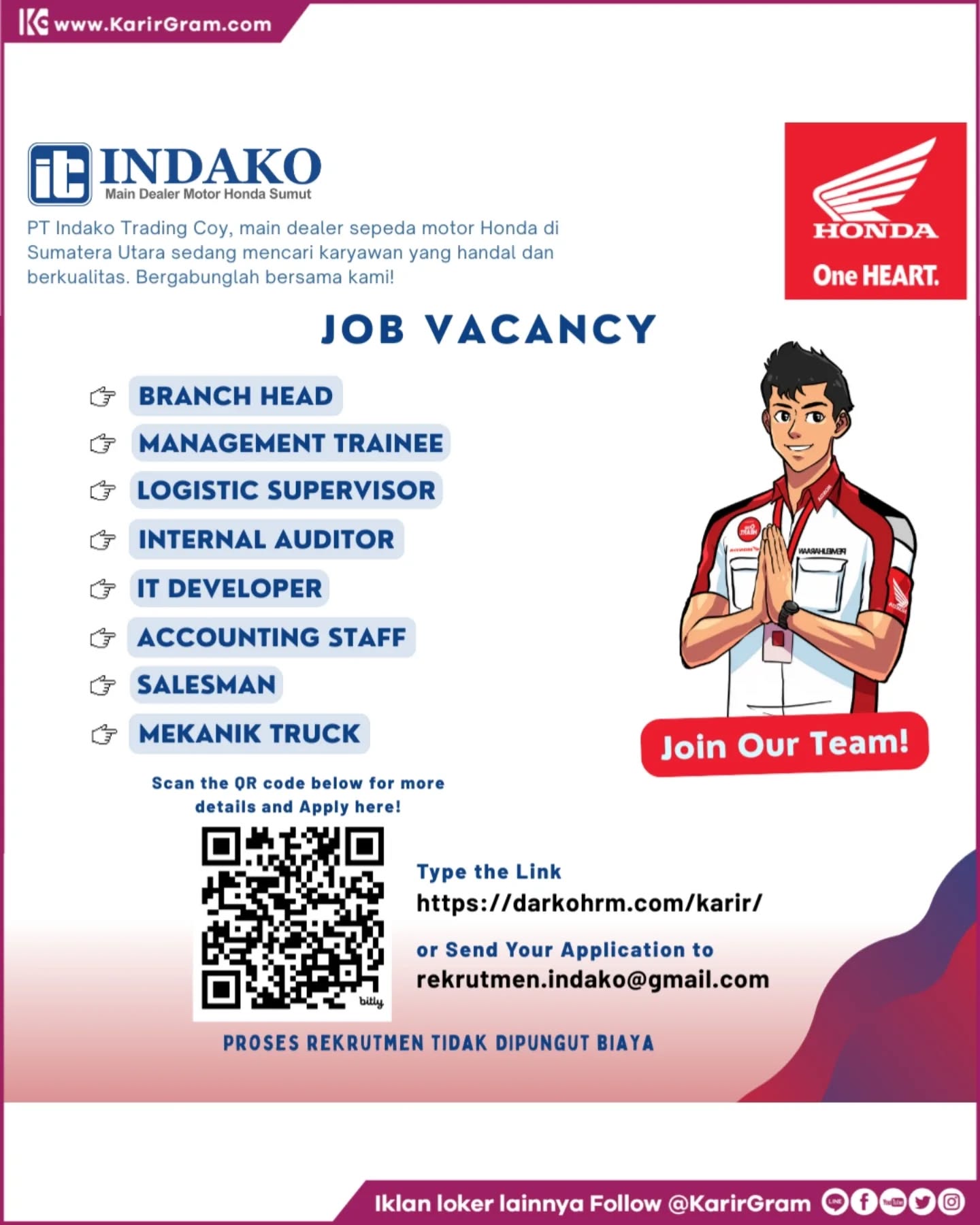 Cerita Medan & SUMUT: LOWONGAN KERJA STAFF JOB VACANCY – BRANCH HEAD – MANAGEMENT TRAINEE – LOGISTIC SUPERVISOR – INTERNAL AUDITOR – IT DEVELOPER – ACCOUNTING STAFF – SALESMAN – MEKANIK TRUCK Scan the QR code below for more details and Apply here! Join Our Team! Type the Link https://darkohrm.com/karir/ or Send Your Application to […]