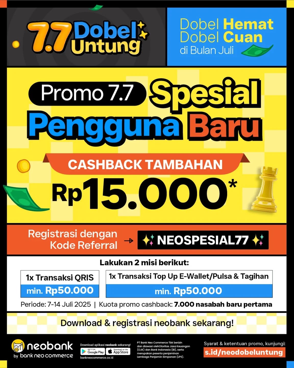 7.7 DOBEL UNTUNG SPESIAL UNTUK PENGGUNA BARU NEOBANK! Buka