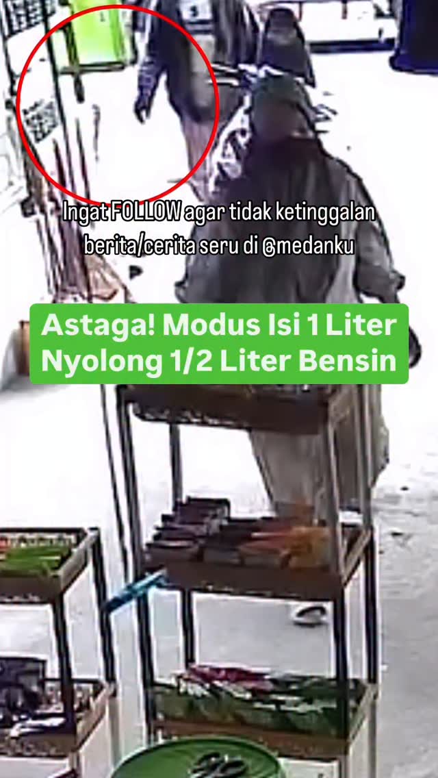 Menurut pengirim video: “Mohon izin menyampaikan berita pencurian di kios saya, tepatnya di jalan Teuku Amir Hamzah Binjai Utara, ada seorang bapak bapak dengan modus beli bensin eceran di kios saya dan membayar dengan uang 50rb’an. Disaat karyawan saya hendak balik ke meja kasir, untuk ambil uang kembalian, dengan sigap tangannya langsung mengambil botol bensin eceran dari rak dan dimasukkan ke dalam jok motornya. Dan pelaku sempat melihat ke arah cctv dan pura pura bertanya Qris itu untuk apa. Mohon infokan ya min, agar yang punya kios seperti saya lebih berhati-hati lagi.. Isi yang diambil 1/2 liter min dengan harga 6rb, dia ngisi 1 liter dengan harga 12rb”